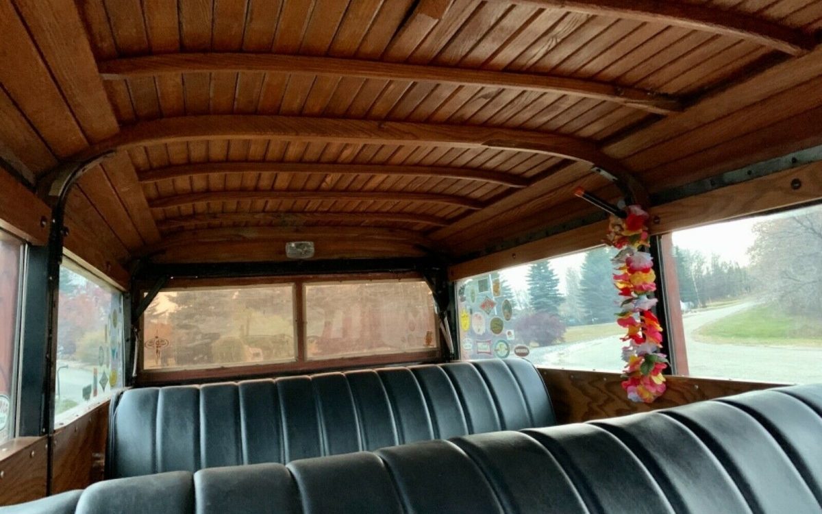 The interior has beautiful woodwork. The ceiling, door panels, and window trim is all wood and although the seller says some have been cracked and repaired, overall, they don’t look bad. Besides the seats, the dash is the only major piece in the interior that isn’t wood. The first thing that jumps out when looking at the dash, is the late-model steering wheel and column. Unfortunately, this takes away a bit from the nostalgic feel of the car, but if the buyer wants to return it to stock, it shouldn’t be too difficult.