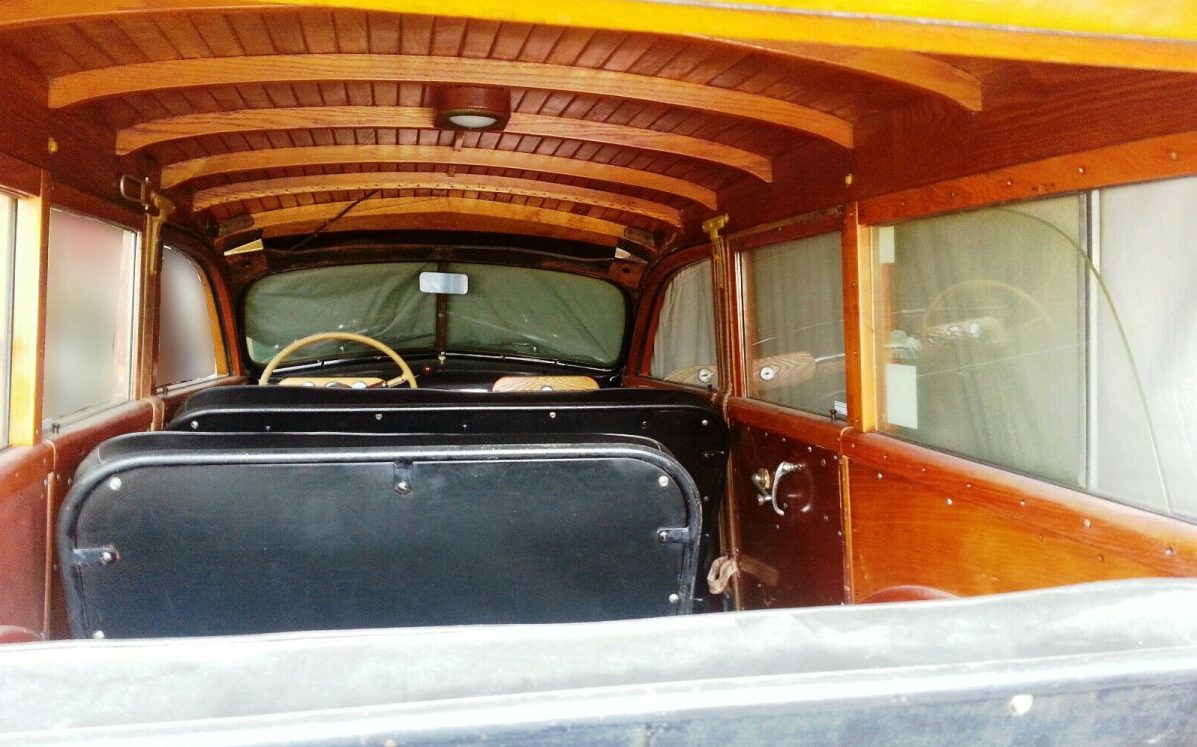 The images with this listing are poor, there’s no other way to state it and that’s unfortunate because this is an interesting car, and the images do little to nothing to promote it. The seller describes it by stating, “It is a 4-door, 8-passenger wood-bodied wagon (Body by Hercules), in near original form. The wood is in very good order. The floors are solid, as is the top. There is next to no deterioration within the interior and there is next to no surface rust where there is metal. The chassis has not been modified and is in comparatively good condition for a vehicle of this age. All of the original handles, window cranks, and interior parts remain intact and function(al). The original glass remains crack-free and in unspoiled condition”. From what can be seen of the extensive wood treatment, it does show well but there are only two images of the steel portion of the body and they’re not very conclusive. As can be seen in the last image, there appears to be a body repair of some sort occurring around the passenger side headlamp – no telling what else the cover is hiding.