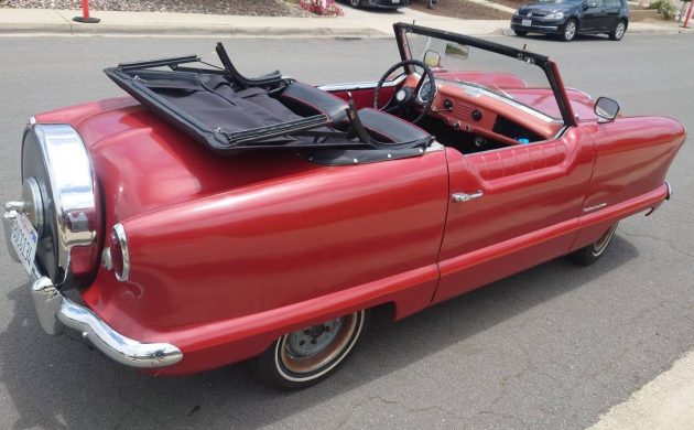 It can be discombobulating when a new car is introduced less than two months before its car company merges with another one. That was the case of the subcompact Metropolitan. It went on sale in March of 1954 under the Nash Motors Company name and two months later, Nash merged with Hudson Motors to form American Motors Corporation (AMC). By August of ’54, both Nash and Hudson dealers were selling the economical little car with the two differences being a Hudson grille badge and horn button. Only about 6,000 Metropolitans were produced across the pond in Birmingham, England, for the 1955 model year with only 3,849 shipped to the U.S. I couldn’t find a breakdown of Nash versus Hudson or 2-door hardtops versus convertibles, but I’d wager the Hudson number was pretty low and makes them the rarer of the dual branded ’55 Mets. Here’s one of those Hudson Metropolitans that’s still alive and kicking in the Golden State, has had a lot of work done to it recently, and is looking for a new home. It’s located in Escondido, California, and is for sale here on craigslist for $12,000 or best offer. Thanks to Mitchell G for sending this Micro Met our way.