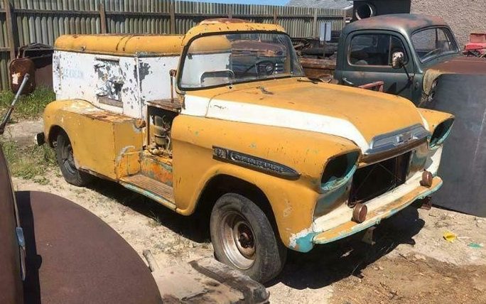 There isn’t a close-up photo of the interior in the ad, but the seller says it is “extremely basic” but the dash is complete. The body is said to be solid and the refrigerated box is complete and structurally sound. The truck came originally with a 6-cylinder engine and 3-speed manual transmission although they are not currently in the truck.
