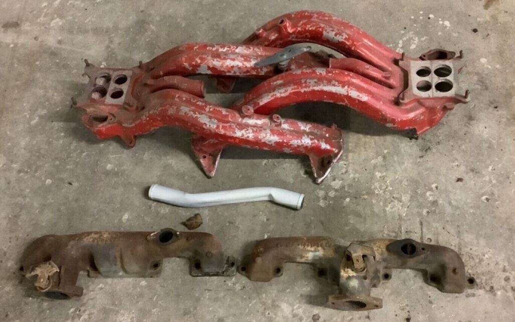 Good news! The seller has the original intake and exhaust manifolds but he’s missing the born-with carburetors, heat tubes, and air cleaners.