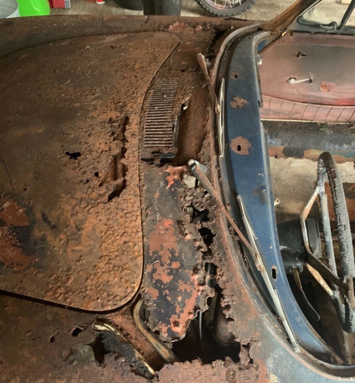 Bob, it’s very obvious you’ve never restored one of these cars, especially one without any good metal left on it. Example…. the rusty area below the windshield area almost never looks like that except after it’s been filled with saltwater.