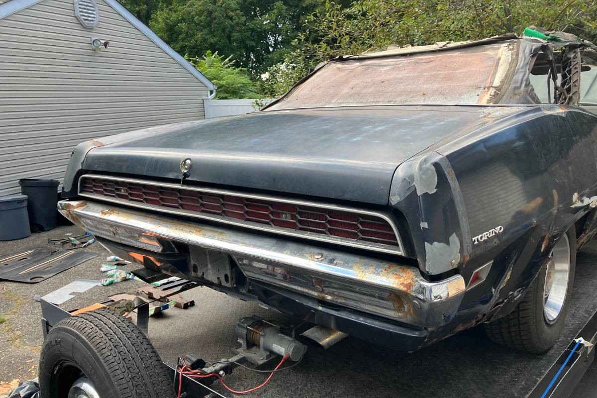 The car on the trailer photos. Gotta love ’em! What this tells me is: ” Hey! I just ripped off the old geezer that owned this car, by paying him $1200, and he threw in some old memories with the deal. Now? I want $12500 for this beat up Torino, that the old feller had stored under his lean to since 1983. Please don’t make me winch this thing off the trailer, because I’m too busy working on my next “deal.”