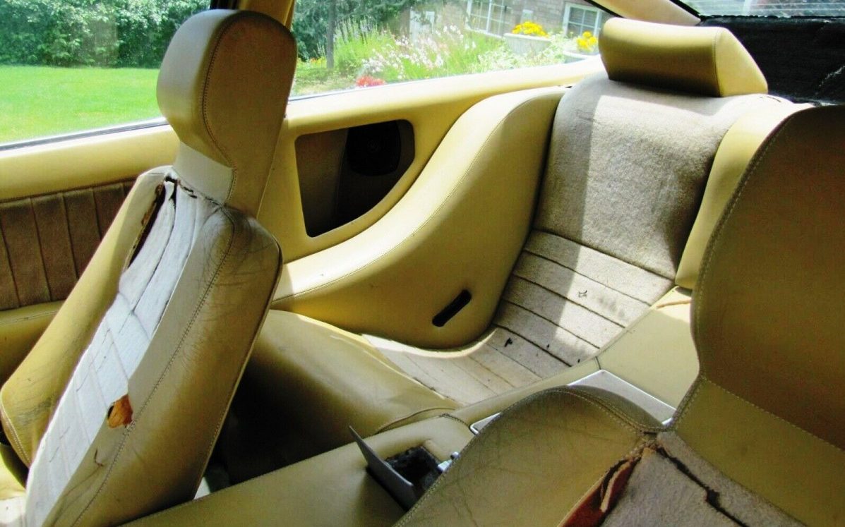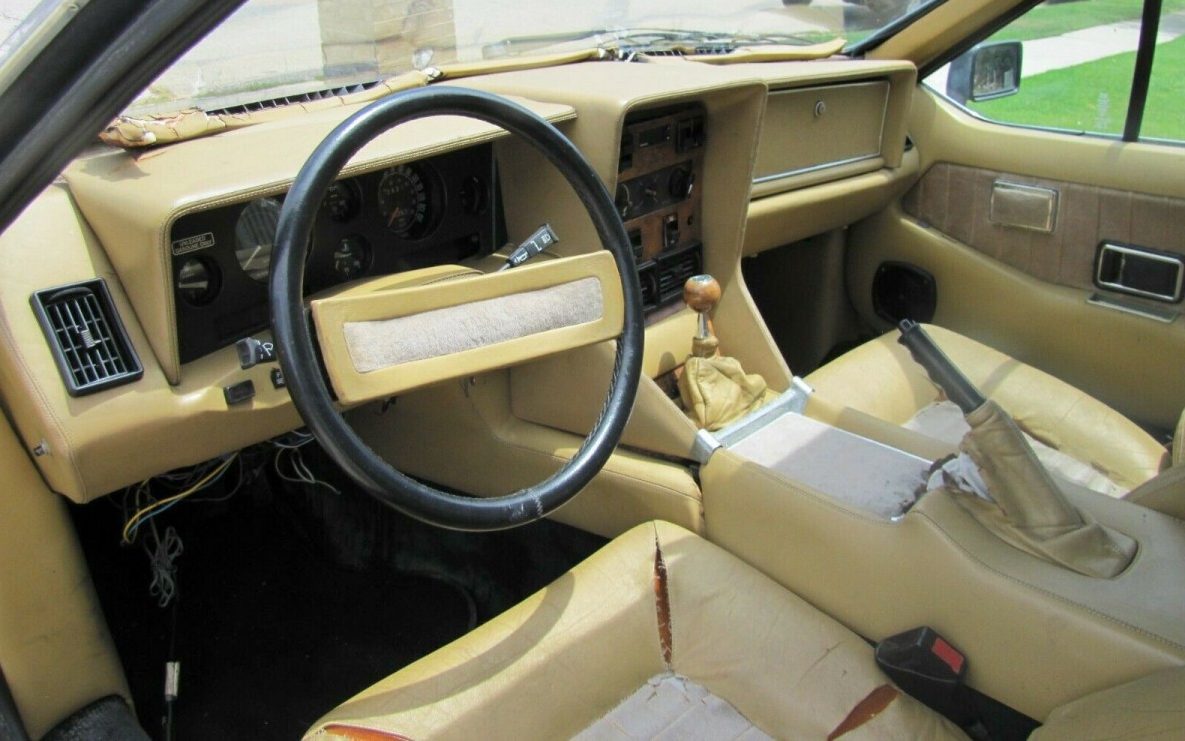 Side pods allow storage of dehydrated vittles for long space voyages. What looks like supple leather likely requires complete replacement at this point. Near-stock upholstery will help preserve the value of this rare British classic, but no one will be comparing your ’82 Lotus to another unless you attend a Lotus club event. What would you give to own this rare wedge-shaped 2+2?