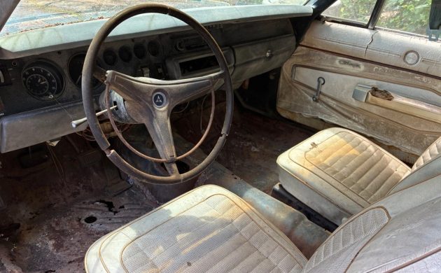 A 383 was originally in the bay, but it looks like years have passed since any engine has resided there. It would be tempting to install a 440 with either a 4-speed or a TorqueFlite, but going back with the 383 and 3-speed would be true to how this 1970 Dodge Charger 500 began life, and that transmission would probably be more attention-getting at car gatherings. Either way, this one will need lots of work before it’s ready to be back on the road in any configuration. Which direction would you go in with this one?