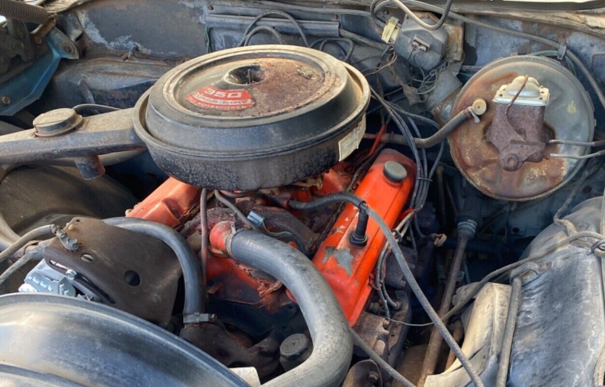 The seller says the 350 cubic inch V8 (2-barrel carburetor, output 245 hp) runs quite well although the mileage may exceed 100,000. It’s driven several times a week and the seller recently took it on an overnight trip. So, mechanically little attention may be needed. This Chevy came with an 8-track tape player and it – and some 8-track cartridges – are probably in the trunk. Once restored, do you think this anomaly in the Bow-Tie world would track much attention?
