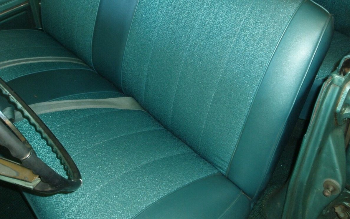 The interior of this Malibu is a pleasant surprise. While the exterior, as noted earlier, is pretty sunbaked, that’s not the case inside. The upholstery fabric and carpet would appear to have seen little usage though the steering wheel does show signs of a tight grip. This Malibu has a reported 147K miles so I’ll make a leap here and suggest the front seat material, at least, and the carpet have been replaced. There’s no mention of the interior or condition of the back seat, headliner, door cards, etc. so that would be good information to know. The dash and instrument panel both check out well, however. From an instrumentation perspective, there’s not much that can’t work other than a speedometer and a fuel gauge. Chevies of this vintage weren’t overly communicative.
