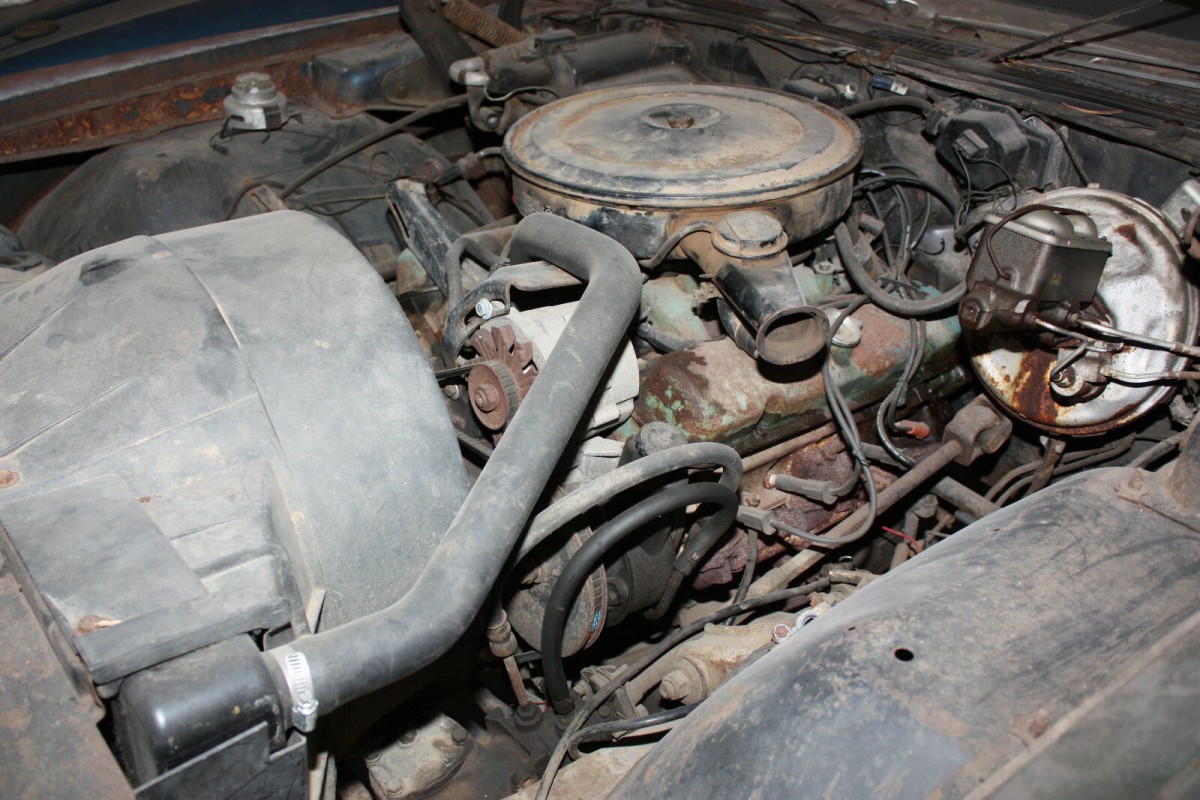 The second generation Grand Prix was built from ’69 until ’72 and was the first model to be built on the General Motors G-Body platform along with the Chevy Monte Carlo. This particular car is a “J” model and left the factory painted Atoll Blue with black leather interior, perhaps the remaining paint is original. On the subject of the paint, the seller makes it clear this is a project in need of a complete restoration. The body has a considerable amount of rust on the quarter panels, fenders, and trunk area but the frame appears to be in good shape. The seller believes is partly due to the cars earlier life in Tennessee and Virginia.