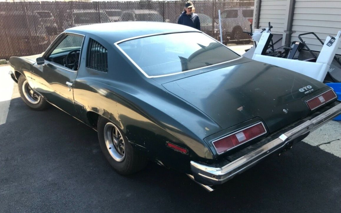 FROM 4/9/19: By 1973, the Pontiac GTO was, well, a very different animal than it had once been. Gone were the days of gas-guzzling multi-carb setups and Ram-Air hoods. In their place came 5-mile-per-hour crash bumpers and decreases in compression. At least you could still get a 400 cui V8 and a 4-speed, although most buyers opted for the Turbo Hydra-Matic. And that’s what makes this ’73 Goat standout from many of its Colonnade styled siblings, a 4-speed manual. Now if only it had been optioned with the 455 V8! At least it’s a numbers matching survivor. You can find it here on eBay in Garfield, New Jersey with a current bid of $6,500.