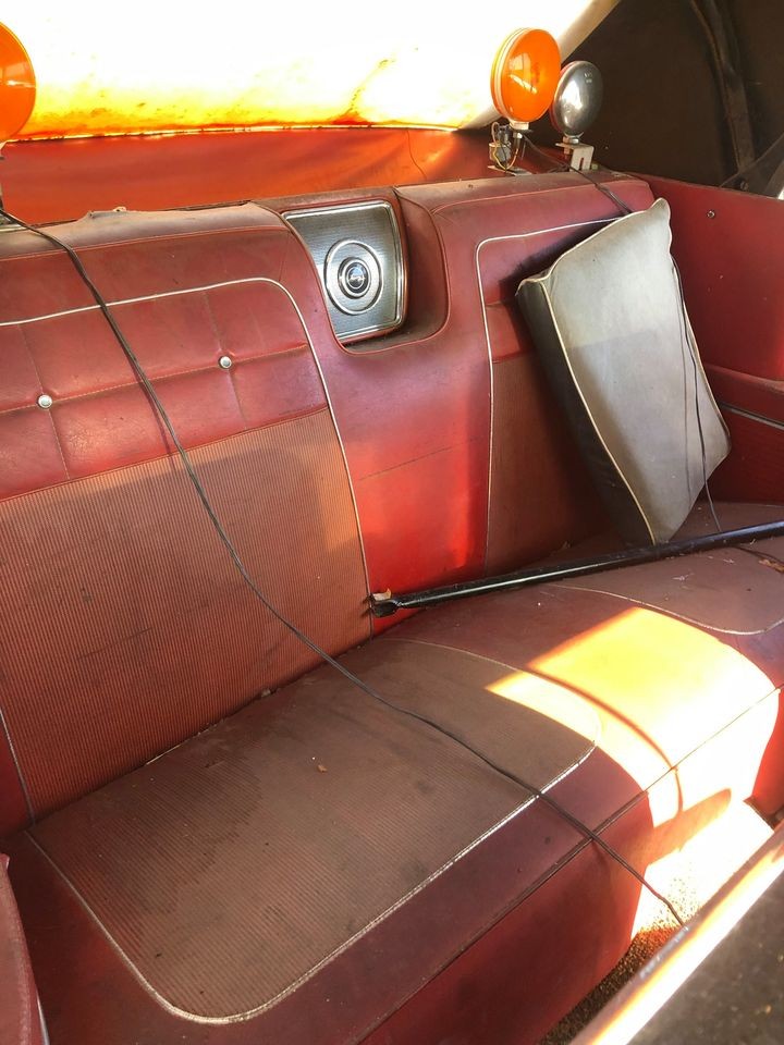 While the pics provided don’t show the complete car, it looks solid, at least on the outside. We don’t see any dents or overt patches of rust and all the chrome looks good. The driver’s side front window is eschewed and the top looks like it might be torn in a couple of places. If you’re into patina, you could probably let the paint go for a while, but the interior is going to need more immediate attention. Unless riding on duct tape is your thing. The carpeting, upholstery, and door panels will need work.