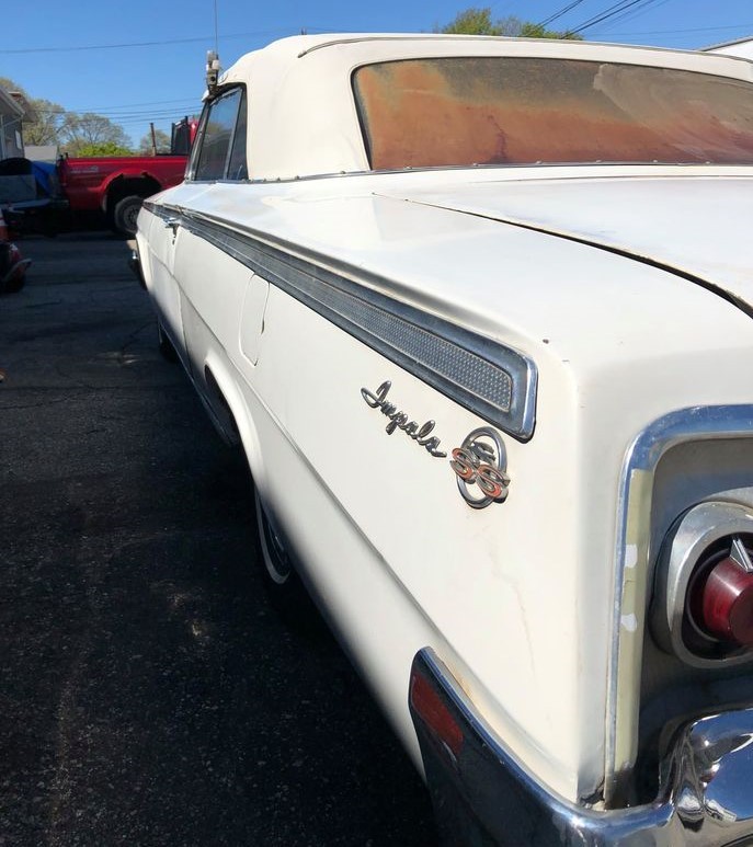 This car checks a lot of boxes for people interested in 1960s Chevrolets. It was Chevy’s Golden Anniversary (50 years). It’s an Impala. A Super Sport. Has the RPO 587 409 cubic inch V8. Has a 4-speed manual transmission. And it’s a convertible! What’s not to want? It’s also been in storage for 22 years and will need restoring. But how many of these exact cars could there have been back then, much less have managed to survive nearly 60 years? This one has and is located now in Warwick, Rhode Island and available here on Facebook Marketplace for the robust asking price of $48,500 or best offer. Our thanks to Peter Rettig for sending this tip our way!
