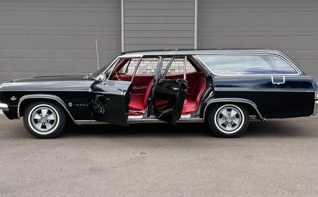 This 1965 Chevrolet Impala Station Wagon is an exceptionally rare find, being one of just 82 built with the 409-cubic-inch, 340-horsepower V8—the final year Chevrolet offered the legendary 409. Even more impressive, this unrestored survivor remains numbers-matching, heavily documented, and in running condition after spending more than four decades in barn storage. Located here on eBay, this black-and-red Impala wagon is offered by a dealer and is reportedly one of the most thoroughly documented factory 409 wagons in existence.