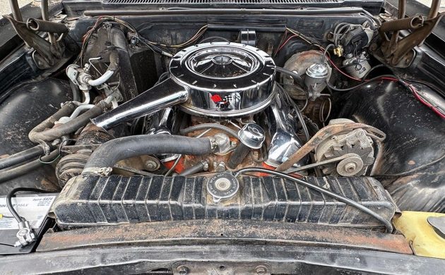 Nice looker. Wonder about the front bumper, mid section and the passenger’s rear corner. Seeing some dings. Also, the water pump has been replaced or re-hosed and the clamps on the AC unit are aftermarket, so budget for a refresh. Sounds like small stuff, though nickels and dimes add up to dollars.