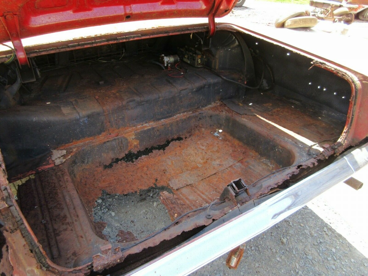 We’re told this Impala has been off the road since 1984. You can see a few new parts in the engine compartment, so perhaps some work was done to get it running as the seller says that it does start. The carbs alone are said to have cost $750 to rebuild. Most of the attention may be needed in the cosmetic department. Just about every body panel is going to need to be repaired or replaced. The floors will need patching and the trunk is of the see-through variety. While the seller says most of the trim has survived, the hood on the car is not correct.