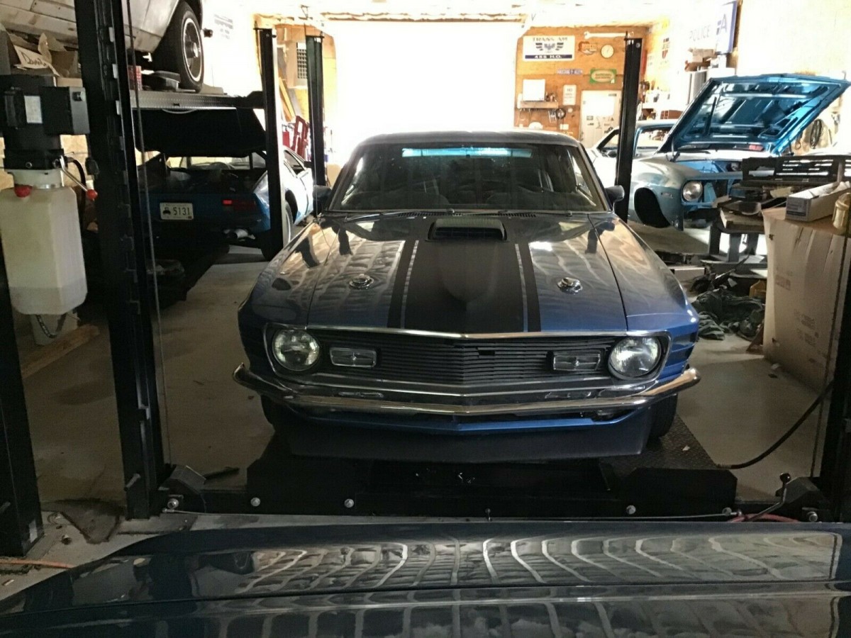 This is a car that you don’t see too often. Sitting in a shop in Chepachet, Rhode Isand is a 1970 Ford Mustang Mach 1 with a Super Cobra Jet (SCJ) 428 cubic inch V8 engine. The car is listed for sale here on eBay with the 3 days remaining in the listing. The seller has a Buy It Now Price of $75,000. Is that too high for a rare car that needs some work? The seller also has an option for buyer to Make an Offer. The pictures of this 4 speed Mach 1 are less than desired but it is still worth a look.