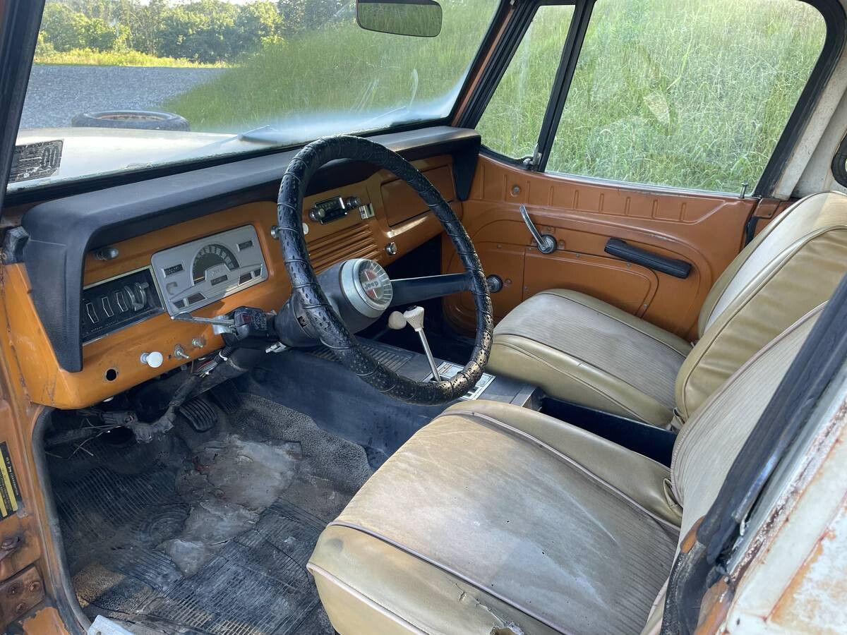 The Jeepster Commando could be ordered with the optional Dauntless V6 engine and a GM Turbo 400 automatic transmission. This one appears to be original and, if so, it was rated at 160 horsepower in 1971. The engine developed 235 lb ft of torque from the factory. The drivetrain on these vehicles were known to be reliable. The seller states that it runs but only one brake is working. The fuel and brake systems will need restoration before this one is reliable enough to drive.