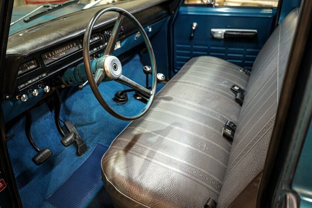 By the 1960s, IH was struggling. It had several lines of business which fostered internal conflict, an underdeveloped dealer network for its passenger vehicles, and it completely missed the trend to comfort that Chev and Ford were riding to record truck sales. The 1110’s interior corrected this, with improved seats, better instrumentation, and several interior trim packages. This truck has a deluxe package with fancy brightwork.
