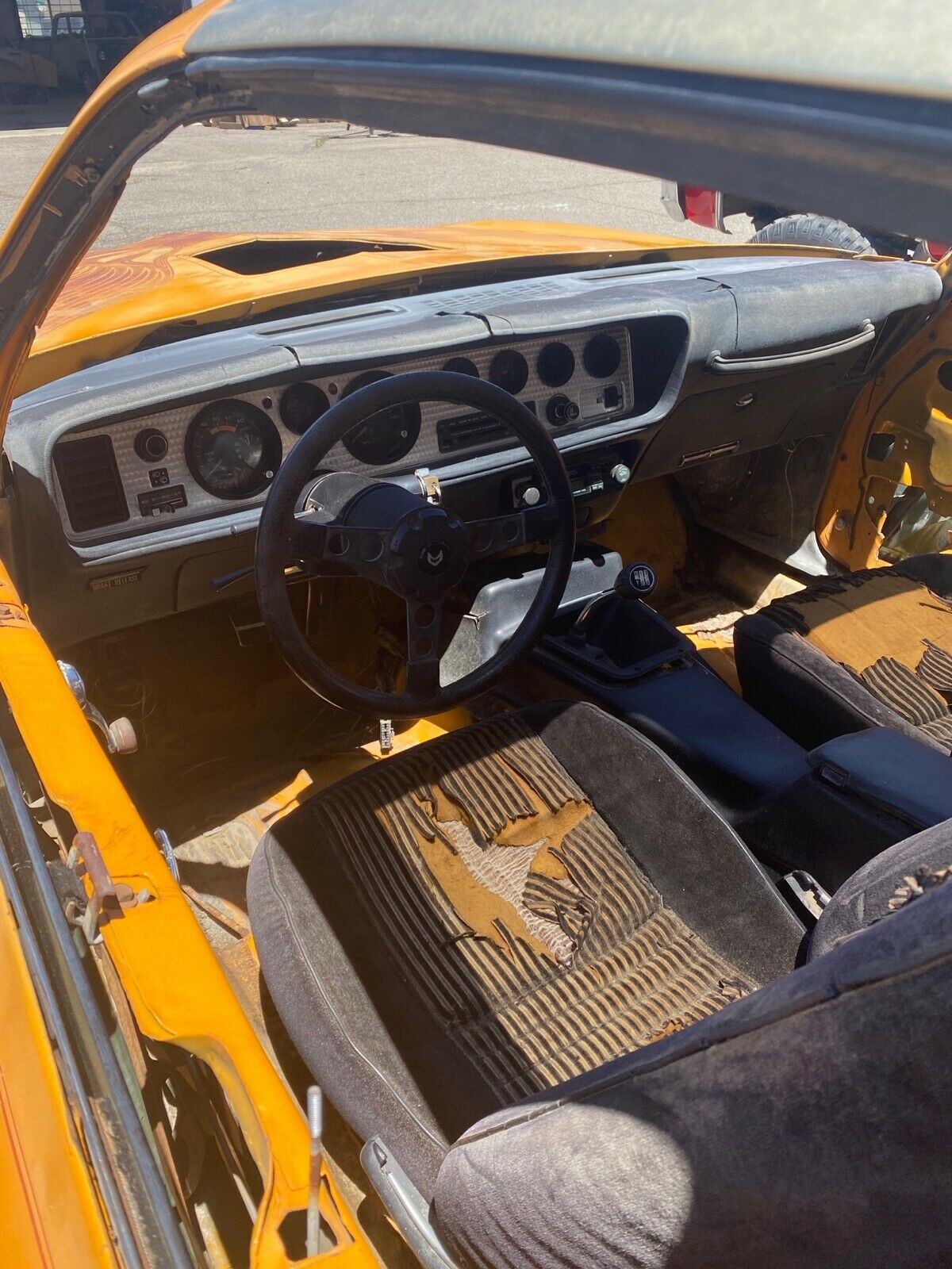 The 5.0 liter Chevrolet engine is long gone but the Borg Warner Super T10 4 speed manual transmission is still in the car. This would be a great opportunity to install a Pontiac 455 cubic inch V8 engine or a 400 cubic inch V8 engine in this car to bring back some excitement. The car is said to be rust free due to the dry Nevada climate. While the bell housing and motor mounts would have to be replaced, a Pontiac engine would make since for the rebuild.