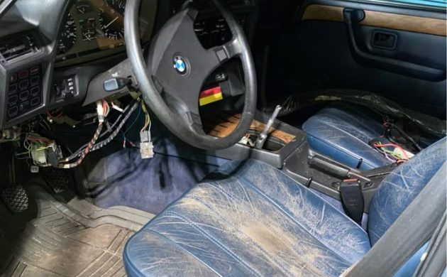The seller doesn’t tell us much about how this 733i ended up parked in the garage and seemingly hacked up a bit, with wires hanging down from the steering column. This usually indicates an electrical fault of some kind that he went hunting for, and presumably, was unsuccessful in remedying. The Pacific Blue leather is in tough shape, but this is one of the best colors you could get in an 80s BMW interior. It’s not torn, so hopefully, some leather dye will solve most of the cosmetic issues. The seller has put 350,000 miles on this 7-Series, which is a testament to how overbuilt they were.