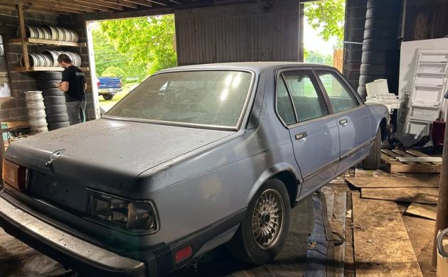 Here’s the parts car, which still wears its original “TRX” wheels and tires. Of course, finding tires for these wheels is cost prohibitive, but it’s still nice to see an old BMW wearing these unusual wheels. It also indicates that this supposed parts rig could be better than expected, as most cars have lost their TRX wheels by now. Perhaps this one was never messed with? Regardless, as you can see in the top photo, there are a few other cars lurking in the background, and it makes me curious about what else may be hidden about the cinder block building this desirable 5-speed car is hidden in. Do you think this inline-six equipped 7-Series can be put back into use with nearly 400K on the clock?
