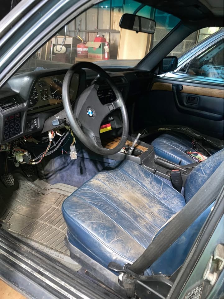The seller doesn’t tell us much about how this 733i ended up parked in the garage and seemingly hacked up a bit, with wires hanging down from the steering column. This usually indicates an electrical fault of some kind that he went hunting for, and presumably, was unsuccessful in remedying. The Pacific Blue leather is in tough shape, but this is one of the best colors you could get in an 80s BMW interior. It’s not torn, so hopefully, some leather dye will solve most of the cosmetic issues. The seller has put 350,000 miles on this 7-Series, which is a testament to how overbuilt they were.