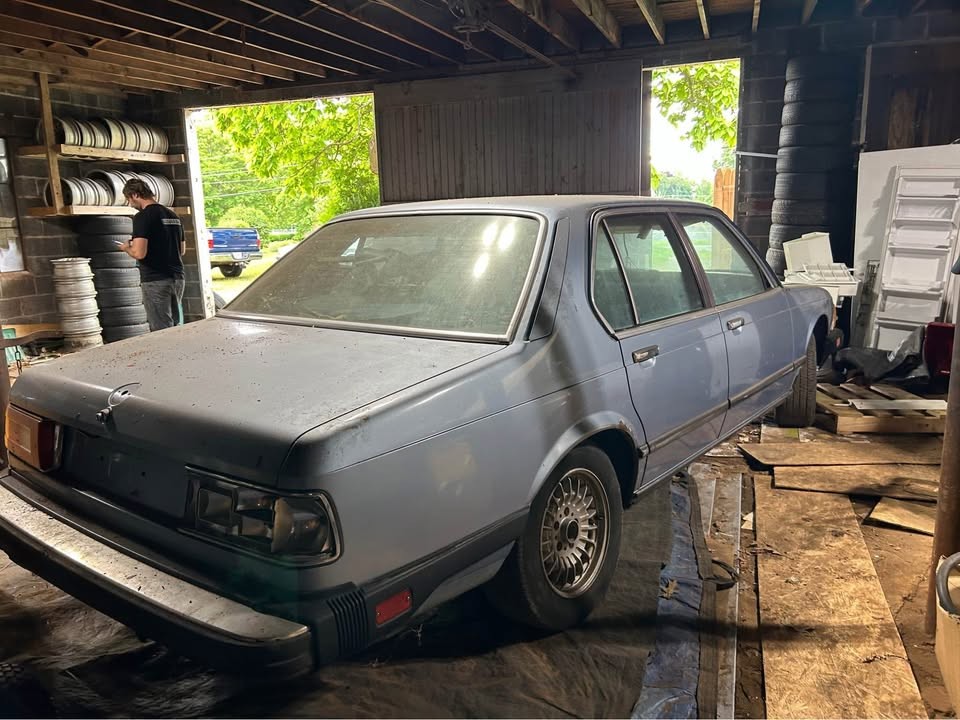 Here’s the parts car, which still wears its original “TRX” wheels and tires. Of course, finding tires for these wheels is cost prohibitive, but it’s still nice to see an old BMW wearing these unusual wheels. It also indicates that this supposed parts rig could be better than expected, as most cars have lost their TRX wheels by now. Perhaps this one was never messed with? Regardless, as you can see in the top photo, there are a few other cars lurking in the background, and it makes me curious about what else may be hidden about the cinder block building this desirable 5-speed car is hidden in. Do you think this inline-six equipped 7-Series can be put back into use with nearly 400K on the clock?