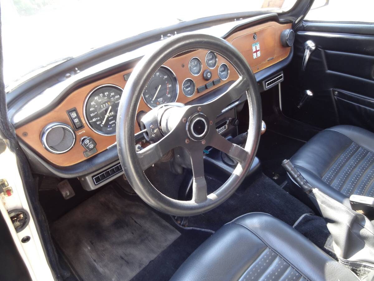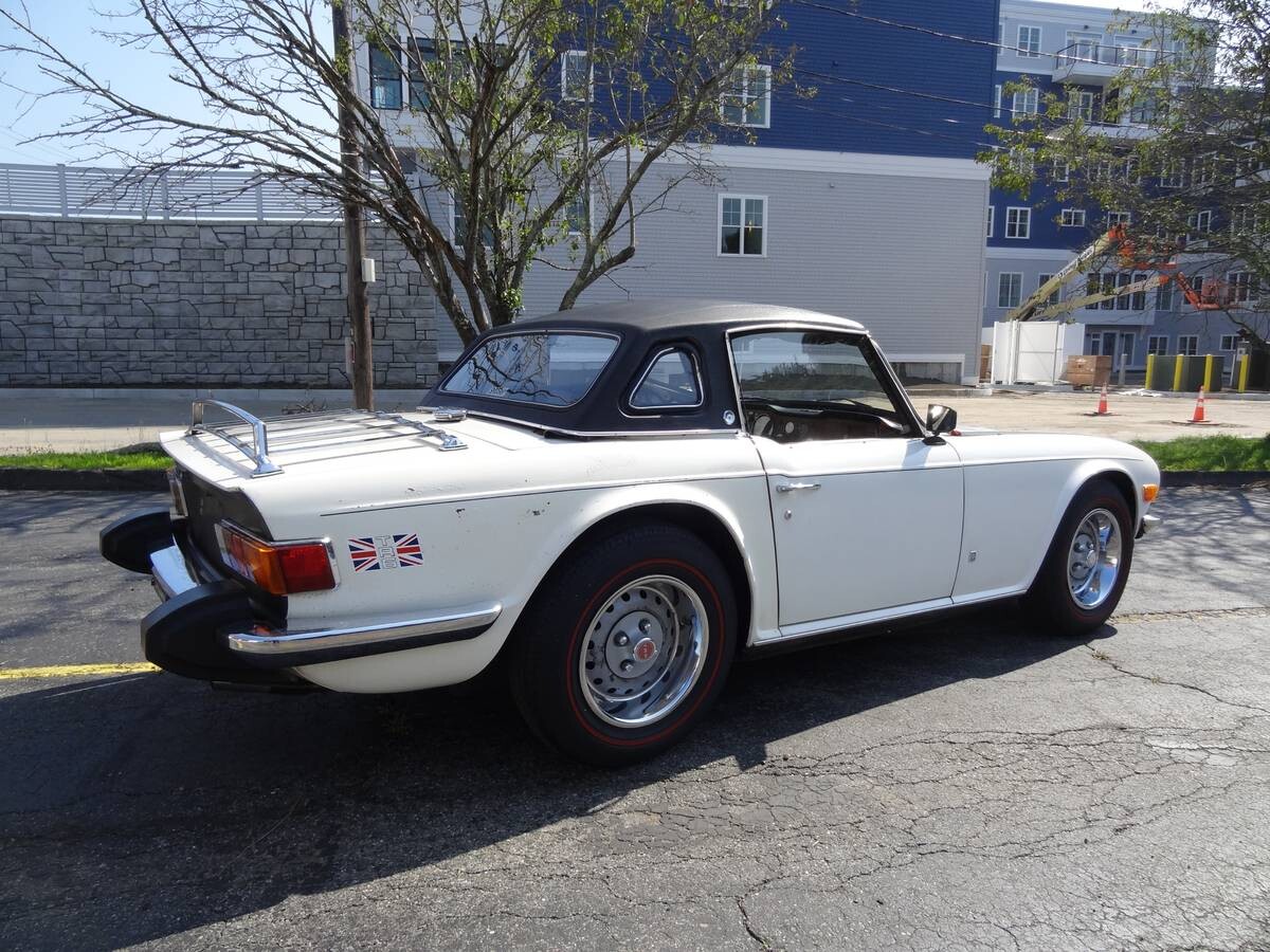 Besides the nice hardtop, one of the features of this car is factory air conditioning. Almost 95,000 TR6’s were produced from 1969 to 1976. The TR6 was powered by a 2,498cc inline 6 cylinder engine producing 104 hp and 142 ft/lbs of torque. Power is sent to the rear wheels via a four-speed manual transmission. This is the last year of production and many consider it to be the most refined. The front bumperettes or over-riders, while a legislative requirement, are unattractive and could be removed but the bumper may need to be rechromed or polished.