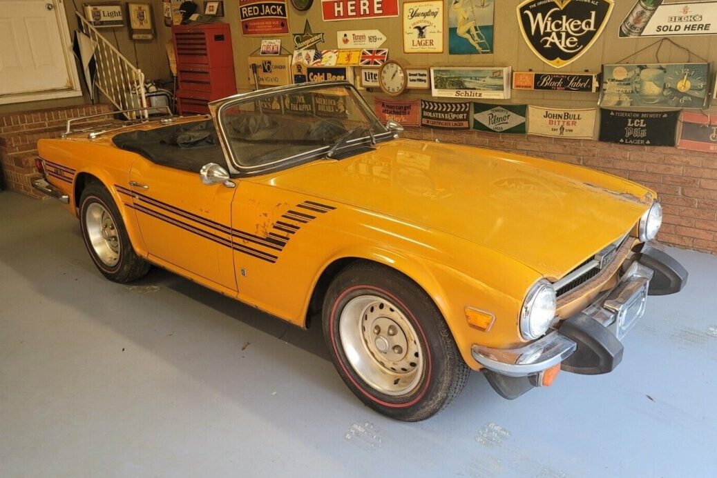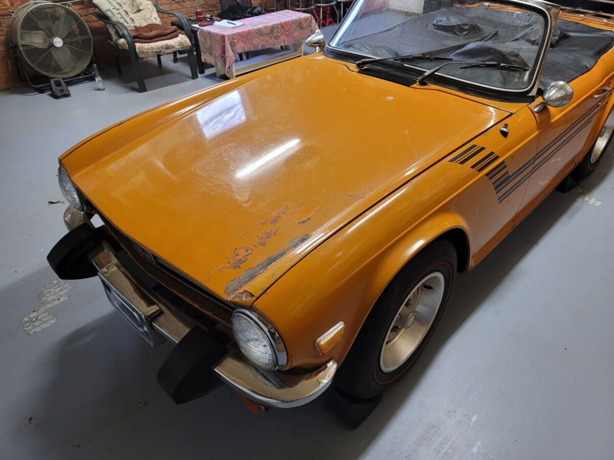 If I were to pick a favorite from Triumph’s “TR” series, the TR6 would win the contest hands-down. I’ve always felt the styling was a winner, and it is one of those rare classics where I can clearly remember spotting my first one. Few cars have that sort of impact on an enthusiast, but it demonstrates how much I like these little cars. The seller indicates they purchased the vehicle from a previous owner who had left it in dry storage for many years. They planned to restore the TR6 as a daily driver but changed circumstances mean that won’t happen. Rather than leave it sitting for longer, they decided that sending it to a new home would be wise. They describe the Topaz Orange paint shade, a color only offered in 1975 and 1976, as rare. I haven’t seen many wearing that color, but that hardly constitutes solid evidence! The paint shows its age, and the buyer will undoubtedly strip much of it away before applying a fresh coat to recapture the car’s lost youth. One issue they won’t face is rust repairs. The seller says that the floors and trunk pan are rock-solid, and the supplied photos support that assertion. The top frame is in good order, with the seller including a new top, an as-new top cover, and a tonneau. The glass looks excellent, with the chrome appearing acceptable for a driver-grade restoration. Triumph hit a sweet spot with the steel wheels, and the deep trim rings add an aggressive touch to the TR6’s appearance.
