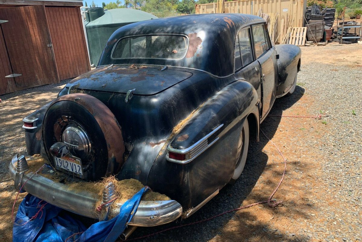 With a history that was defined more by excellence than by high volumes, Lincoln was the perfect environment for Edsel Ford to develop and express his creativity outside the watchful eye of his father. The cars that resulted were either extremely elegant or at the cutting edge of styling trends. Quite often they were both. The 1942 Continental was definitely at the cutting edge of bold styling, although maybe not as elegant as earlier offerings. However, with the intervention of World War II, production numbers were incredibly low, making these 1942 models a bit of a rarity today. This 1942 Continental Club Coupe appears to be a solid car that is just waiting for someone to return it to its former glory. It is located in El Cajon, California, and is listed for sale here on eBay. Bidding on the Lincoln classic has now reached $5,600 in what is a No Reserve auction.
