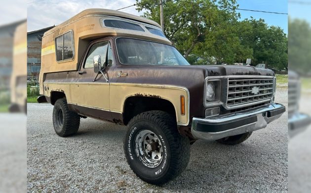 The seller says this 1977 Chevrolet Blazer Chalet 4×4 camper is “rare as heck”, and they’re right; only about 1,800 of them were made over a two-year period. Sadly, it’s also rusty as heck and needs a heck of a full restoration on every square inch inside and out. You can find this pop-top 4×4 camper conversion project listed here on eBay in Everest, Kansas – there is a current bid price of $1,602.44, and a buy-it-now price of $5,350.