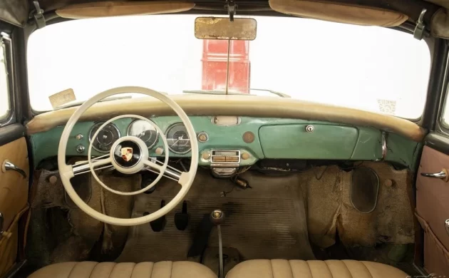 Complete, and the underside looks solid. Great color combination. The engine and underside appear to have been steam-cleaned, and the muffler and rubber brake lines look new. These engines rarely last beyond 100,000 miles, and the seals, etc. will have dried up, so running it as-is will probably cause oil leaks. These engines are relatively simple to overhaul, so I’d do that now and drive it to see what else it needs. Unrestored open 356As in this condition are rare, so $40,000 is not crazy. Still, restoring it properly will cost well over $100,000, though you could invest that and enjoy the car for years while it appreciates. A good negotiator could end up with a good deal.