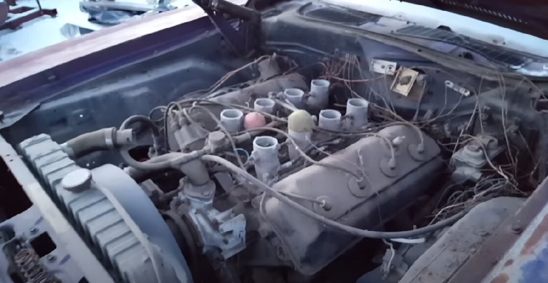 The 7 uncovered injectors and unhooked water hoses are going to contribute nothing to the preservation of this rare engine.