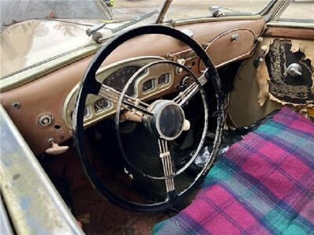 The tan paint looks decent once cleaned up, but the convertible top may be tattered. The interior will need a complete makeover and time and other inhabitants of the barn have had their way with the insides of the car. We’re told that most of the items you will need to complete a restoration can be secured from a firm in Germany that the seller can put the buyer into contact with. If you’re familiar with these vehicles, when was the last time you saw one, in any condition?