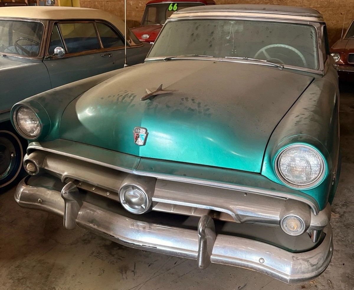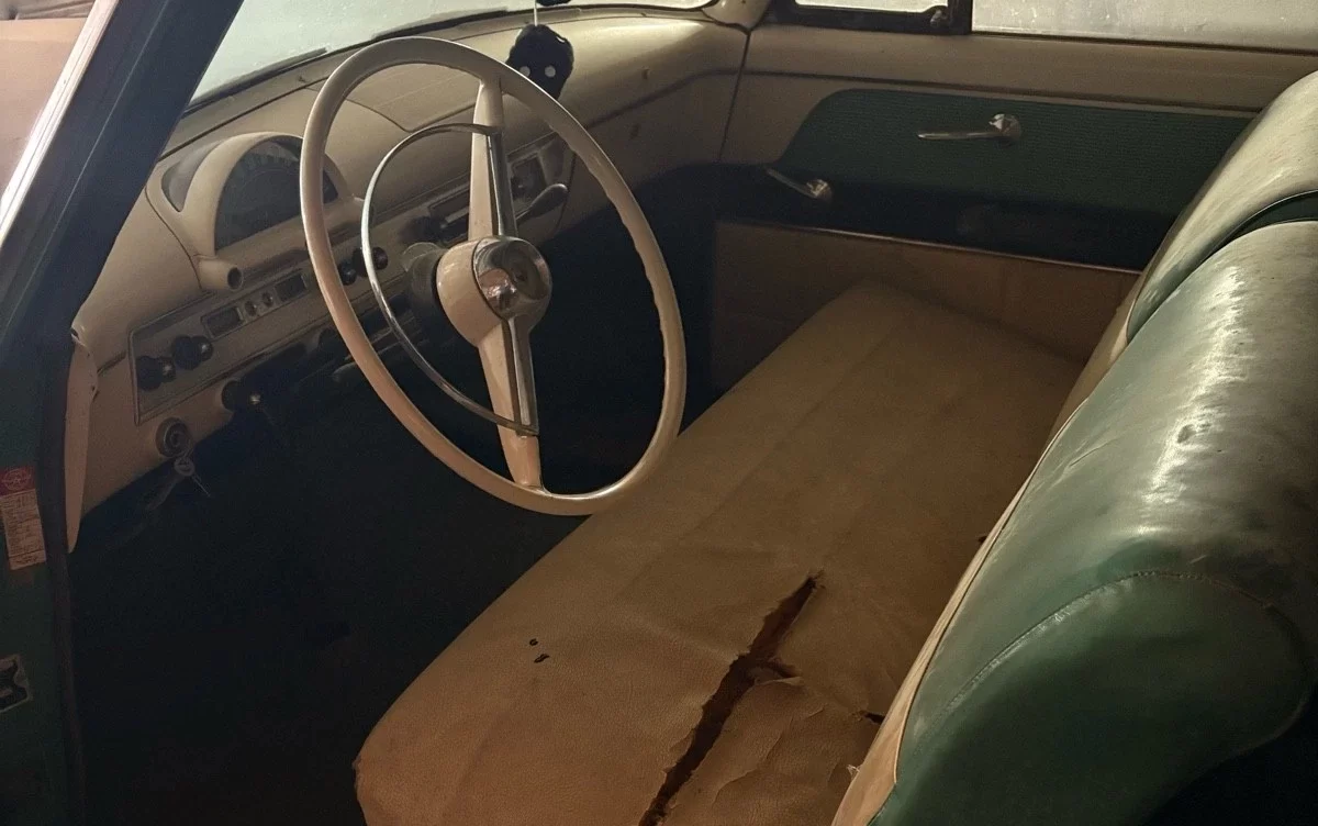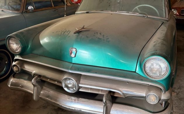 Although it didn’t look like it on the surface, 1954 was a big year for Ford. The primary reason was an entirely new V8 engine, the Y-Block, which replaced the vaunted “flathead” after decades of production. The second was a ball-joint front suspension system, which replaced those hardy old kingpins. The third, and less far-reaching, was this new Crestline Skyliner with its green-tinted plexiglass roof insert. Therefore, Ford was selling a car that looked much as it had for the previous two styling seasons, but it gave the salesmen a lot to talk about to prospective customers. Apparently, whoever bought this Skyliner new wanted the best Ford had to offer, and it’s now being offered for sale here on eBay in its dusty Barn Find glory: Located in Shell Rock, Iowa, the asking price is $8,000 or best offer.