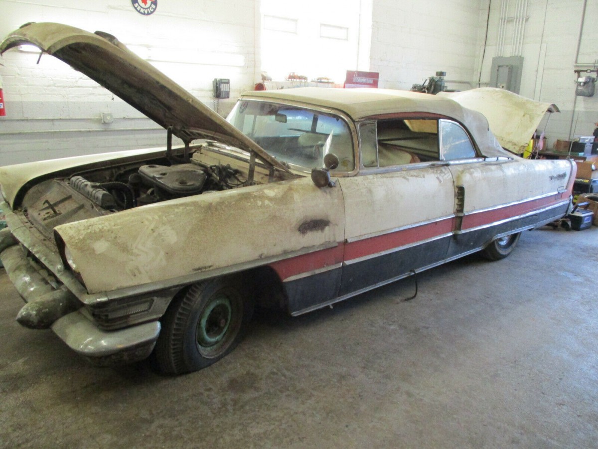 It’s going to go a lot higher than $6,000 or $7,000 (where it is now), mark my words! Very rare and very desirable car that looks like a fairly easy restoration. My guess is that the engine is stuck–that’s usually the case when they have been sitting this long and have surface rust on the valve covers. Looks like it has every possible option that you could get in 1955. These have the automatic leveling suspension in the rear; should be a 352 V8, I believe, and beware of worn oil pump cover plates on these Packard V8s. This should be a $60,000 to $75,000 car when restored.
