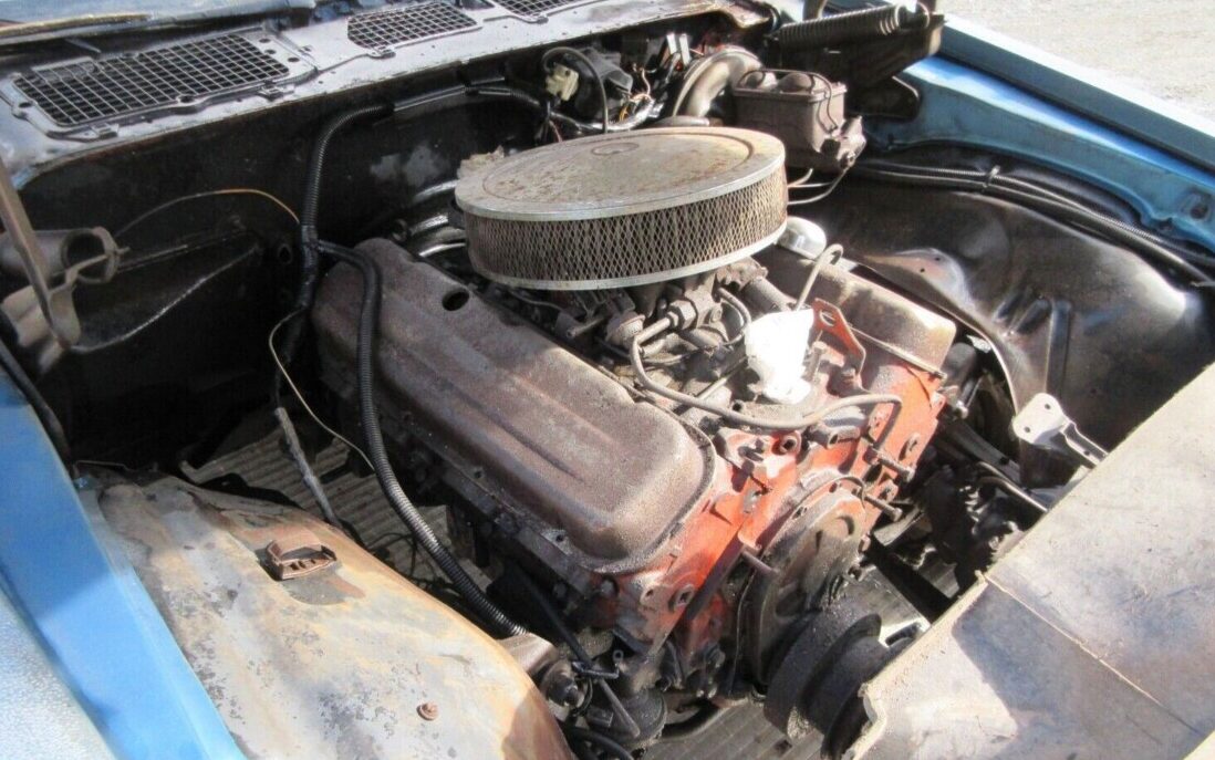 245 horse 402 motor..is not anything that will shake the floor..this camo.will take lots of work to restore the rust bucket floors and all fenders..adm.bout 15k of work.on doghouse..you’d have 55k in this at any shake.for about a 50k car..don’t see many of them left..someone has the money.