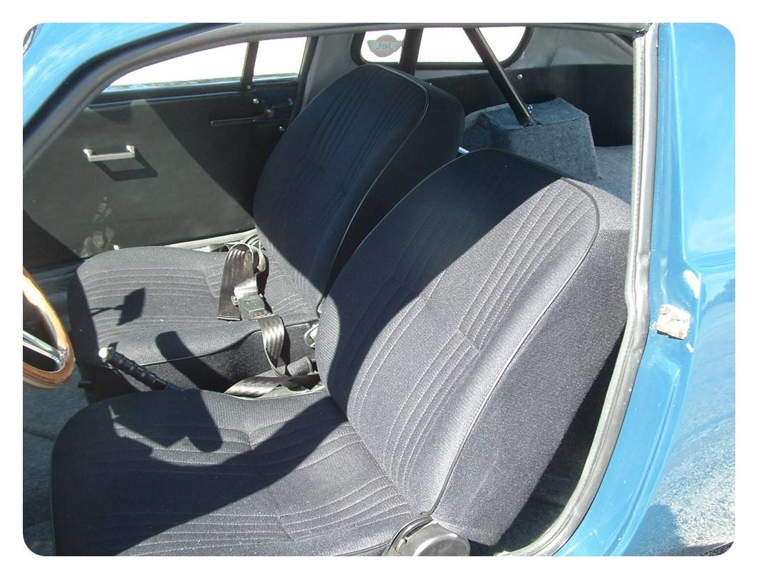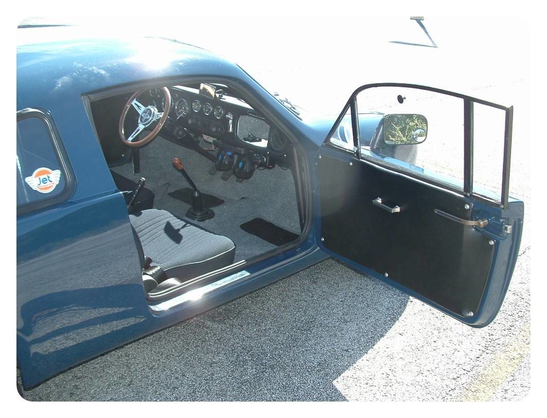 The asking price has been determined by what I have invested in the car: purchase, delivery, maintenance, and upgrades (custom interior). WheN I purchased the car, the interior was bare – the racing buckets and plain, smooth flat rubber mat for floor covering and a sagging headliner (foam backed cloth). I stripped the interior, custom fit new carpeting, recovered all side panels (including the door panels), installed new felt headliner and new seats with regular seat belts.