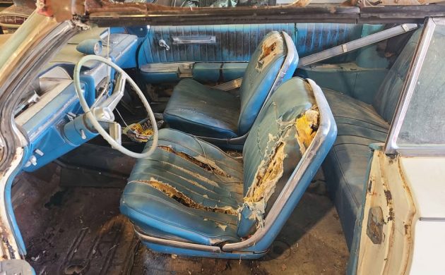 The seller’s major selling point is his claim of, “This car has the rare & expensive factory GM hardback bucket seats.” Well, yes, it is so equipped; as to how rare they are, I can’t determine. What I can determine is that they are in deplorable condition. Of course, the frame and hardbacks are the important parts; one has to assume that a convertible of this age will need reupholstering at some point anyway. Beyond that, the remainder of the interior isn’t in much better condition – it’s torn, worn, and moldy.