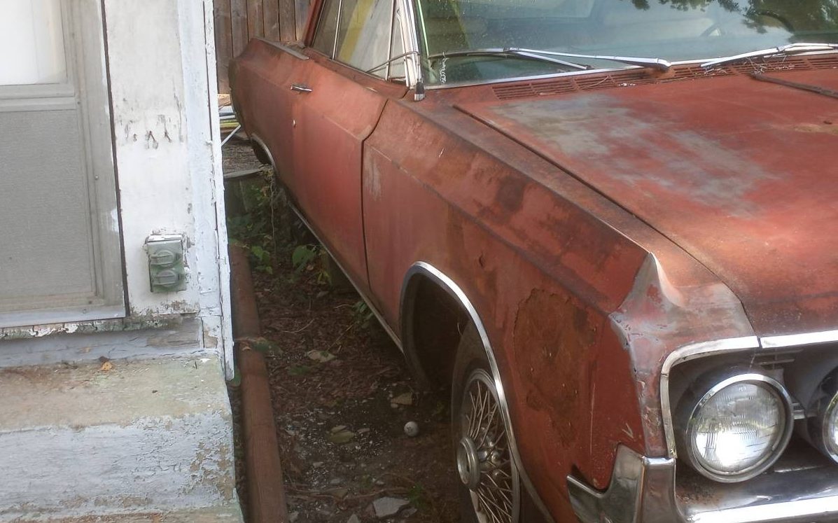 Oldsmobile’s model line-up in ’64 spanned all the way from the Ninety-Eight as the pinnacle to the Jetstar 88 bringing up the rear. Offered in two-door hardtop, convertible, four-door sedan, and hardtop, the Jetstar 88 was hardly devoid of variation and came in third production-wise behind the Ninety-Eight and the Dynamic 88. The listing detail for this example is really light so it’s necessary to make judgments based on the less than forth-telling accompanying images. The finish is rough and there is some Bondo slapped into the driver’s side quarter, surface rust is evident but the body appears to be mostly sound though the rear end has either been the contactor or the contactee with some other object. Most of the trim is still in place but there is a missing piece or two – no worries as the seller claims to have “extra chrome” and another hood. Based on the exterior’s appearance, a good look underneath would be warranted.