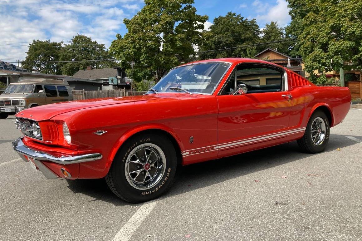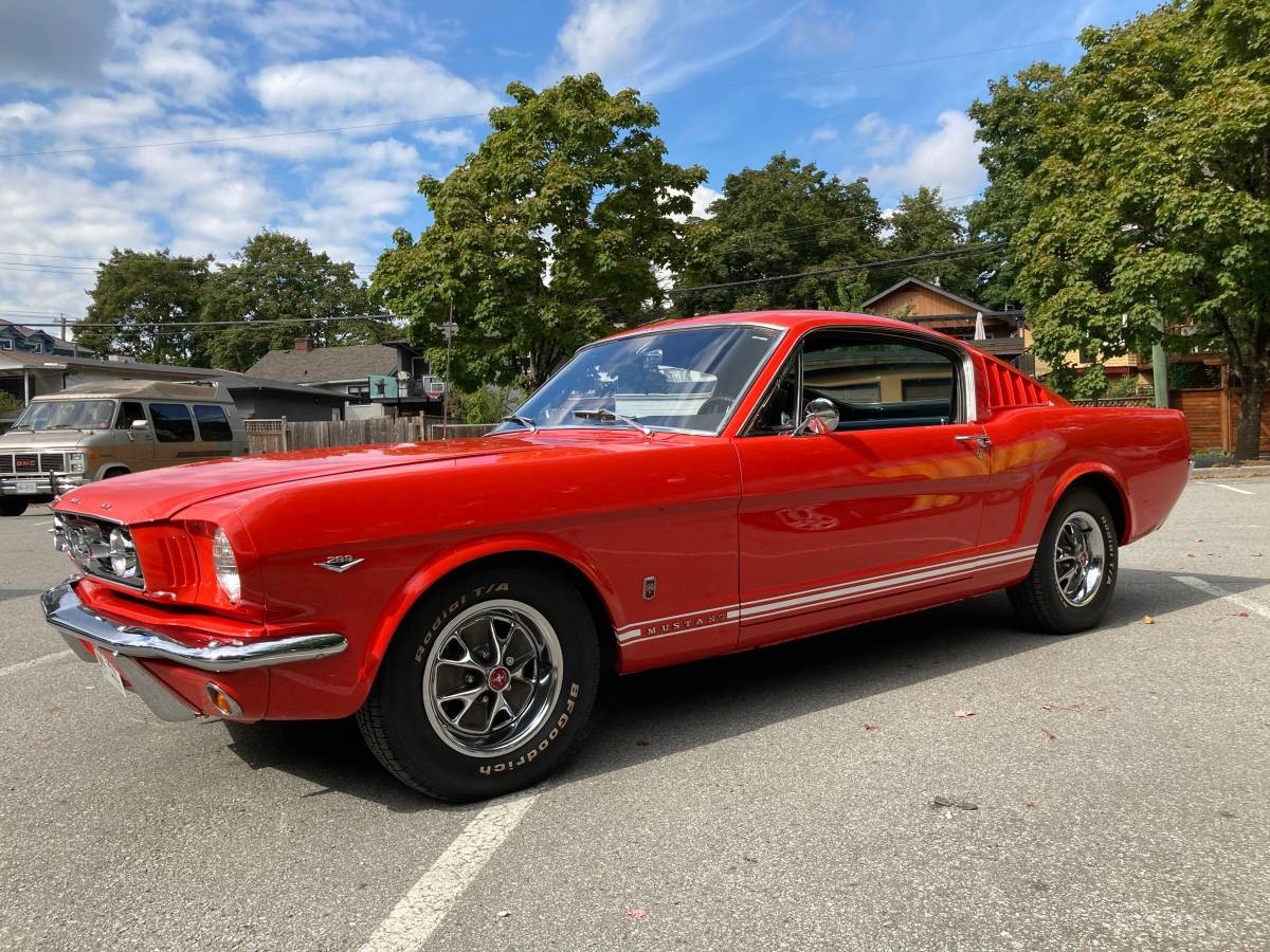 Not a bad price for a GT fastback in this condition converting to US dollars of about $44,000. It seems a rolling shell of any fastback Mustang is $20000. A real K code in this condition is twice the price. My mom had a new mustang coupe in candy apple red, how does this red compare?