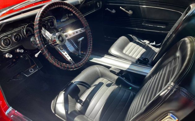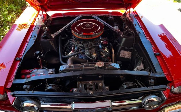 Some classics blend into the background, while others possess the “wow” factor. This Mustang falls neatly into the second category, courtesy of a repaint in its original shade of Signal Flare Red. The seller claims that the paint was applied around five years ago, stating that it is still flawless. There are certainly no visible problems in the supplied images, with the paint holding a phenomenal depth of color and shine, and the contrasting White stripes looking crisp and clean. The correct grille, fog lights, and the remaining trim are in as-new condition, and the glass is crystal clear. I can’t spot any evidence of rust, and the lack of surface corrosion in areas like the engine bay bodes well for potential buyers.