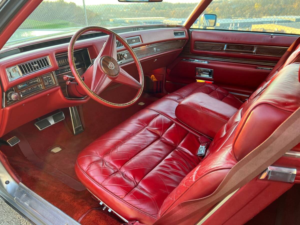 Cadillac introduced the Ninth Generation Eldorado in 1971, and with cars remaining on showroom floors until 1978, it enjoyed the longest production run of any model to that point. It would eventually be surpassed by the Twelfth Generation, which served the company faithfully from 1992 until 2002. The original owner ordered this Eldorado in striking Georgian Silver with a matching Landau-style vinyl top. The car’s history is unclear beyond spending years as part of a private collection, but its condition suggests the seller focused heavily on preservation. The paint holds a mirror shine, with no evidence of significant flaws in it or the vinyl. The photos indicate the Caddy may have succumbed to the typical crumbling bumper fillers because of a color mismatch between those and the rest of the exterior. Its panels are straight, and there is no evidence or mention of rust issues. The trim and glass are spotless, and the damage-prone wheel trims are in as-new condition.