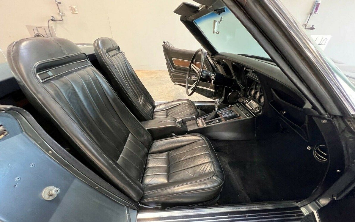 Inside we find an optional black leather interior with a condition reflecting that of the car’s exterior. I have reviewed many C3 Corvettes and the interior, especially in convertible models, often look rode hard and put away wet. Some of that may be due to the fact that all Corvettes of this era are essentially convertibles as the coupes have lift-off roof panels. Leave either body style in top open form, out in the weather, long enough, and you can gather what happens to the upholstery. Anyway, that’s not the case here, I’d be hard-pressed to find fault with anything inside of this Corvette.