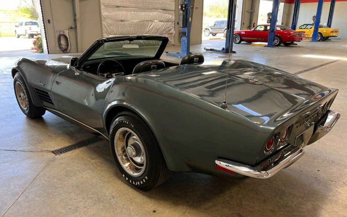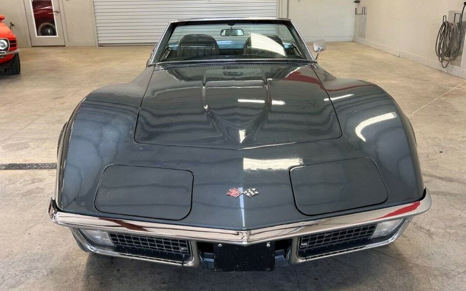 The seller refers to this ‘Vette as being all original as it still wears its born-with paint, interior, and top. Rare or not, the Laguna Gray finish shows very well – almost too well. There is a claim of 40K original miles though there’s no mention of accompanying documentation. But the finish, body panel alignment, and trim would indicate a car that has seen little, careful use – and obviously, sound storage. In an attempt to maintain the original vibe, this ‘Vette is wearing 1970 era Goodyear Polyglas, bias-ply tires.