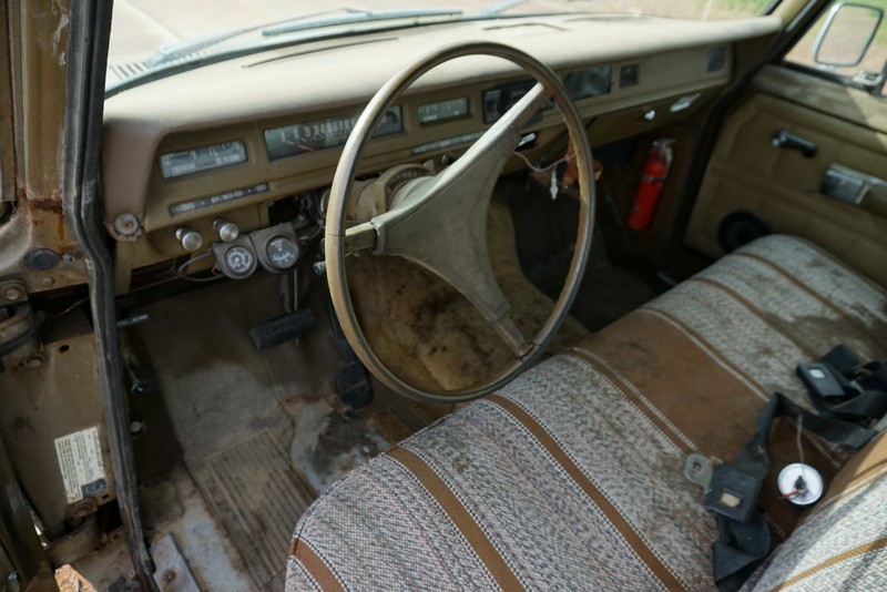 The interior may be original, but it’s also in tatters. Bench seats front and rear mean there’s plenty of room for passengers without any ungainly consoles or amrests to scramble over, and despite obviously being an ideal setup for a highway work crew or contracting business, International was targeting suburbia dwellers who wanted a truck that could haul a fifth-wheel trailer without having to feel like they were residing in a penalty-box of a 4×4. Up until this point, the idea of a truck that wasn’t used purely for work was still a foreign concept, potentially another reason why International didn’t put more customers behind the wheel of this slick crew cab.