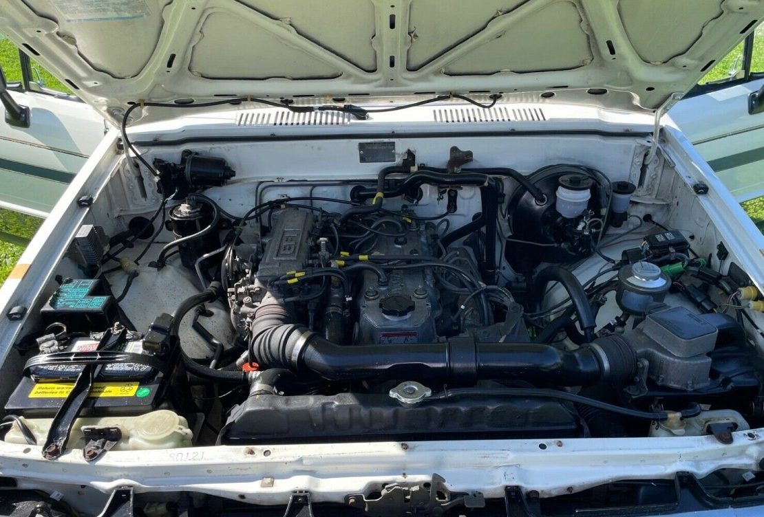 According to the listing, the Special Edition package got you the decals outside; the chrome plating on the bottom of the doors; woodgrain trim on the dash; and special carpeting/upholstery. Given the wood trim is clearly an aftermarket product that was stuck onto the dash with adhesive (much like the exterior chrome plate), it’s all too obvious that a local aftermarket company was responsible for the modifications. More impressive is the fact that those trim pieces haven’t fallen off or otherwise gone missing! The interior remains tidy, with a crack-free dash and the preferred manual gearbox in place.