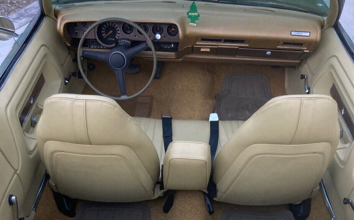 The interior of this car may be its strongest suit. The upholstery and carpet are new, the instrument panel gauges are clear, and the dash pad is unmarred. Interestingly, the original bucket seats were swapped for the current bench – that’s a change that usually goes in the reverse direction.