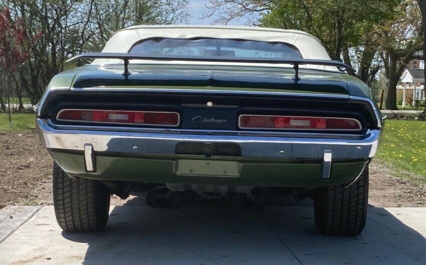 The seller tells us, “This 1971 Dodge Challenger has had a road-ready restoration, not a rotisserie restoration. It has rust! Previous owner replaced trunk pan, right frame rail, rear left floor patch, and one front right floor patch“. Well the admittance of rust, not a surprise, is refreshing on the part of the seller. And as proof of his claim, the above image shows the deteriorated condition of the passenger-side quarter panel (new patch panels included). The paint is claimed to be mostly original and it shows as being fair but most of the listing images are clipped and not very revealing. What can be seen of the folding top yields no surprises, it’s supposed to be new, and of note, are the R/T installed side vents, deck spoiler, and swapped hood.