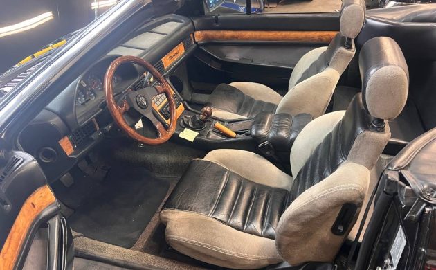 Thanks to Barn Finds reader Curvette for the tip. The Biturbo Spyder was a significant car for Maserati, as it was first open roof model offered by the low-volume manufacturer since the Ghibli Spyder over a decade earlier. The Biturbo chassis was shortened in Spyder form, but otherwise, it looked near identical to the coupe model. The extensive wood trim and leather throughout the cockpit were hallmarks of the Biturbo, but the Alcantara / leather combo with generous side bolsters shown here seems to be a feature unveiled in the convertible version as the coupe had full leather seats with no noticeable bolstering. Of course, the most important detail here is the manual gearbox.
