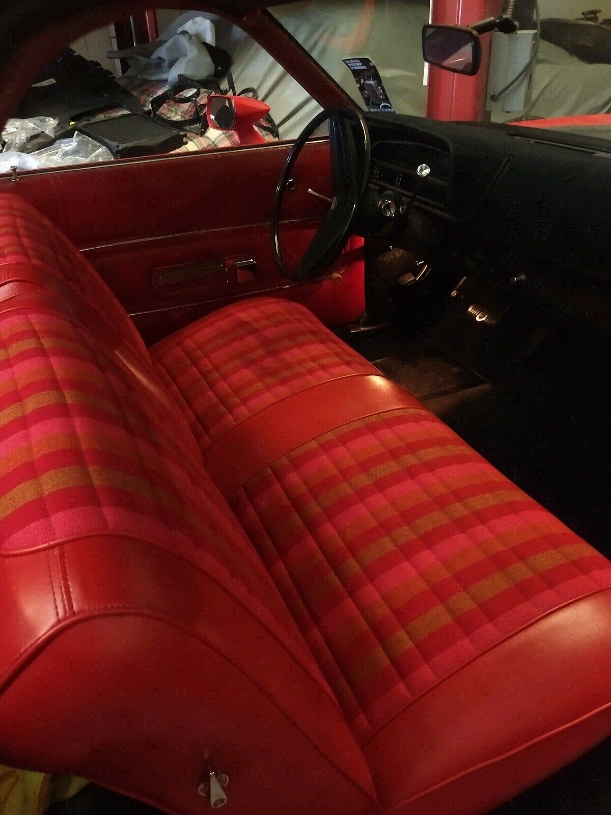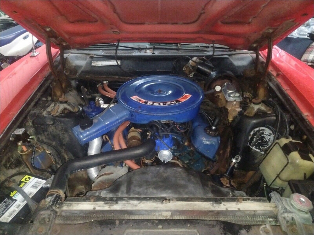 The owner supplies interior shots of this Ranchero, but their quality isn’t great. Apart from some exterior cosmetic upgrades, the “Special Value Package” also brought better upholstery. The bench seat in this classic wears Red Spectrum cloth and vinyl, while the remaining upholstered surfaces feature matching red vinyl. Visually assessing the interior is virtually impossible, but the owner states that the seatcover, Black carpet, and kick panels are new. The dash and pad look okay, so the interior may not need any significant attention. The included Marti Report indicates that the original owner specified a clock and AM radio, but it isn’t clear whether these are intact or if there have been any aftermarket additions.